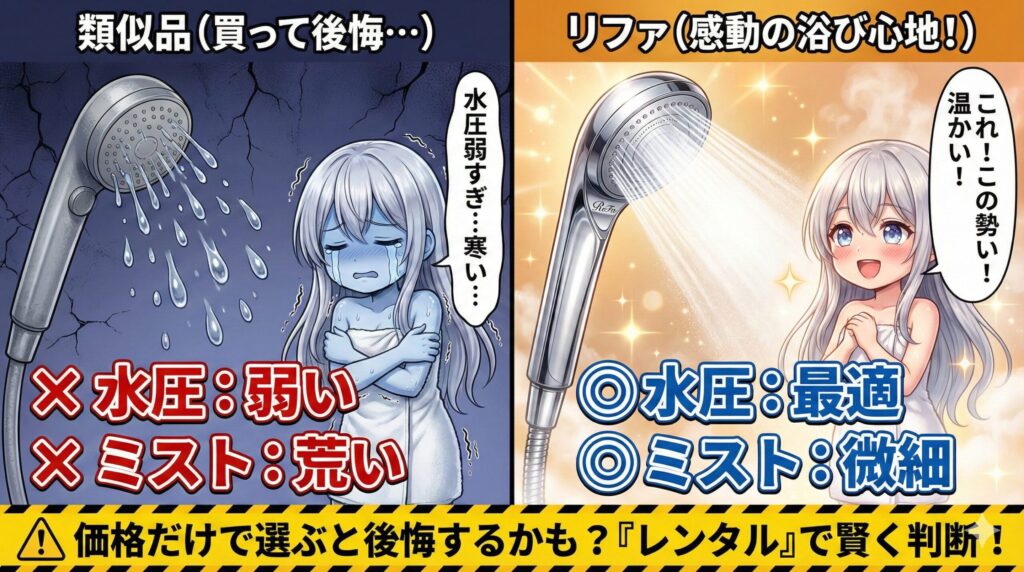 しかし、過去に30,000円という価格と「自宅の水圧」への不安から、一度安い類似品に手を出して大失敗(即返品)した経験があります。